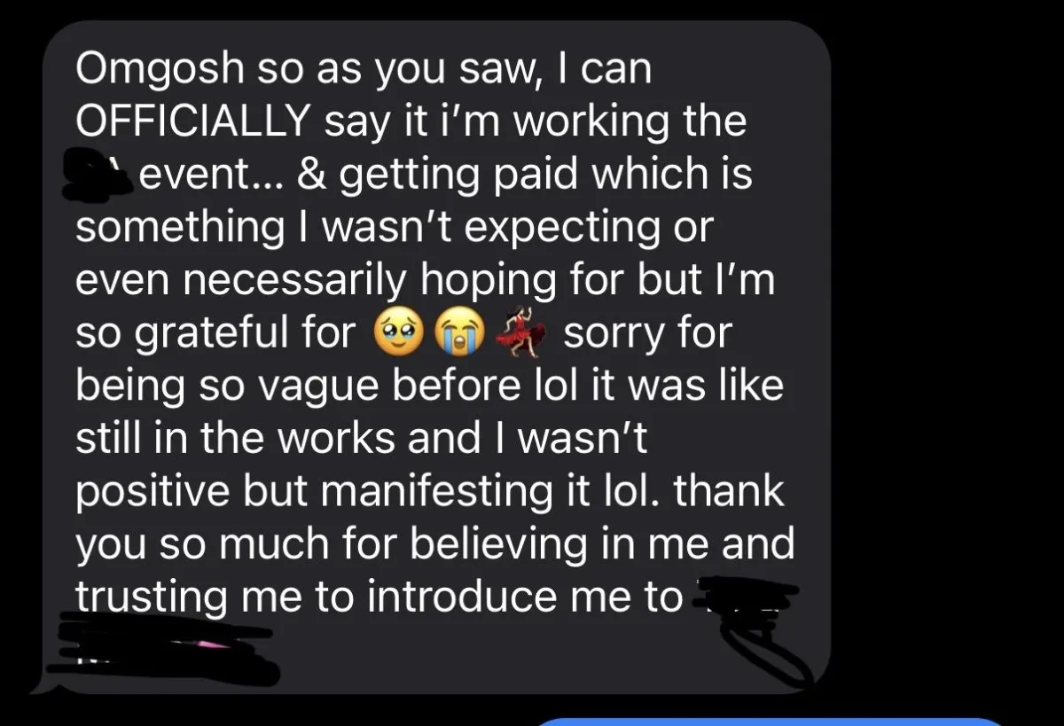 I’ve spent my entire life in the world of performance and production. I was a child actor, homeschooled backstage while working with Equity professionals. Later, I worked behind the scenes booking talent and producing major live events for brands like Disney and New York Fashion Week. (And I still do.)