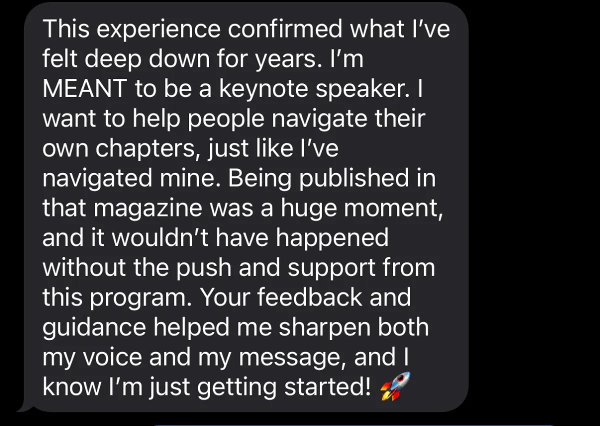 I help high-achieving women step into the spotlight with confidence, command, and a talk that elevates their brand and their bank account.